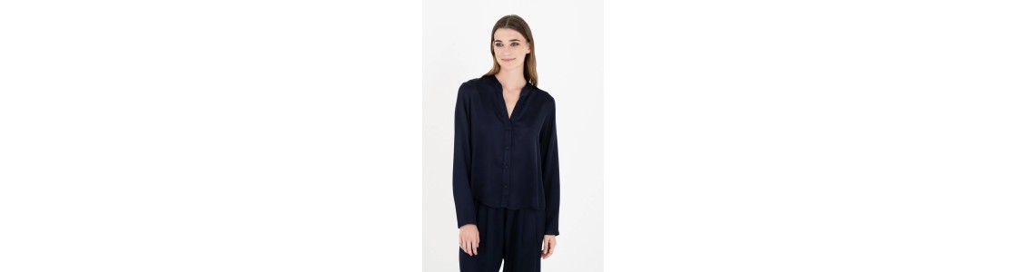 Γυναικείο πουκάμισο από την εταιρεία Moutaki.Λεπτομέρειες: Regular εφαρμογήΗμιδιαφανές ύφασμα με γυαλιστερό εφέΨηλός λαιμός που καταλήγει σε κορδέλες για να δένουνΜακριά μανίκια με μανσέτες που διαθέτουν κουμπιάΣύνθεση: 85% Lyocell, 15% Πολυεστέρας..